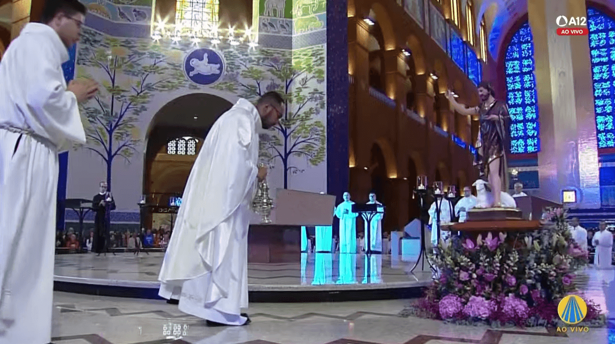 A celebração eucarística se deu início com hino de louvor a São João Batista, no Altar Central do Santuário Nacional e foi presidida pelo Missionário Redentorista e Prefeito de Igreja do Santuário Nacional, Pe. Diego Antônio da Silva, e animada pelo Ir. Ian Lucas Lopes, Missionário Redentorista.