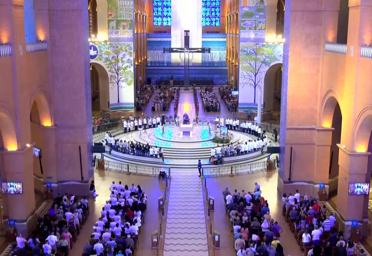 Na Casa da Mãe Aparecida, a Santa Missa das 9h foi celebrada pelo Padre Alberto Pasquoto, C.Ss.R., que na homilia ressaltou que a Igreja, como Mãe, nos insere neste tempo especial para nos atualizar da Paixão, Morte e Ressurreição de Cristo.