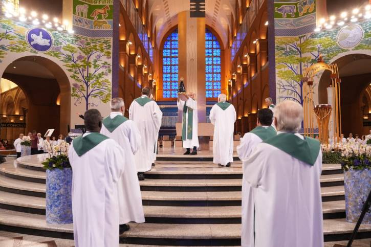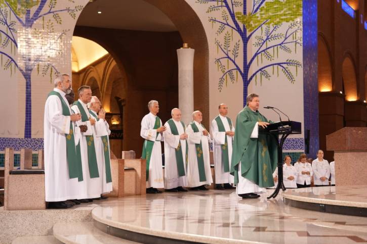 Já na saudação inicial, o reitor do Santuário Nacional destacou o fundamento da celebração: a gratidão a Deus pelo dom da fé: