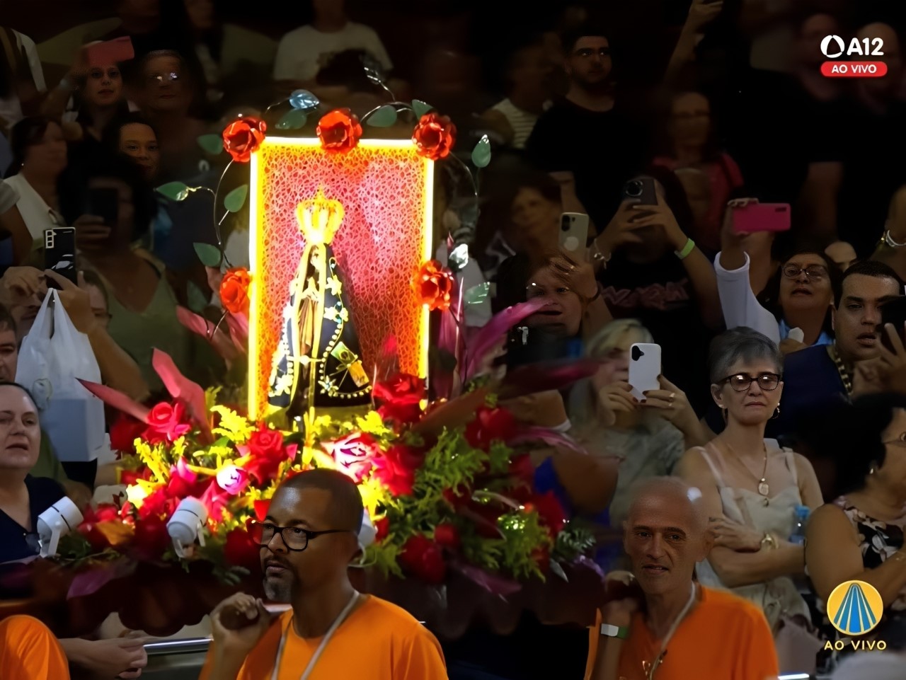 Um dos momentos mais emocionantes foi a entrada do andor de Nossa Senhora Aparecida, conduzido pelas mãos dos próprios vicentinos. Sob as luzes do Santuário, os romeiros acompanharam a oração de Consagração a Nossa Senhora Aparecida, rezada com fervor por todos os devotos presentes e pelos que acompanhavam pela Rede Aparecida de Comunicação.