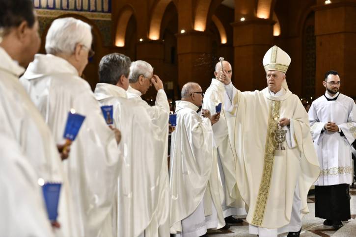 Com essas palavras, o arcebispo conduziu a assembleia a professar a fé na Ressurreição como fundamento da vida cristã e missão da Igreja. Após a homilia, foi proclamada a Ladainha de Todos os Santos.