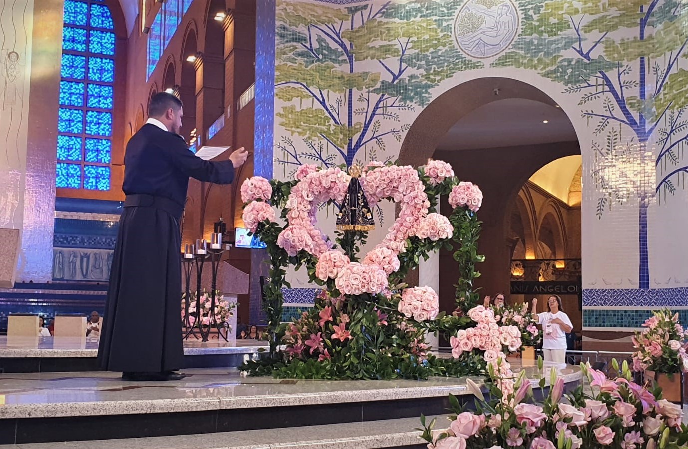 O momento de oração foi comentado pelo Ir. Carlos José da Cunha, C.Ss.R., ecônomo adjunto do Santuário Nacional e presidido pelo Padre Lucas Emanuel, C.Ss.R., prefeito de Igreja do Santuário Nacional.