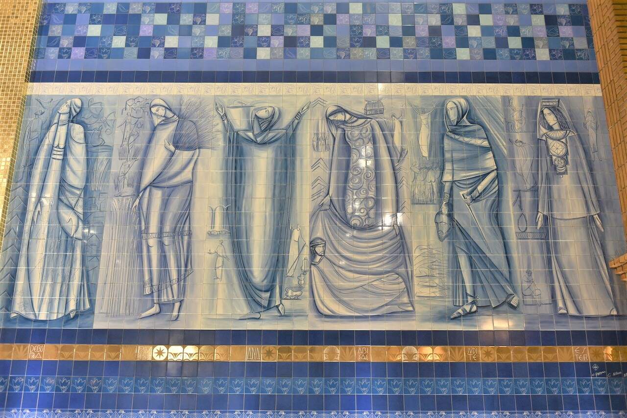 Nas naves sul e norte do Santuário, as obras de arte apresentam, em painéis de azulejo, como as mulheres da bíblia e as mulheres contemporâneas contribuíram e ainda contribuem para a difusão da fé e o seguimento de Cristo.