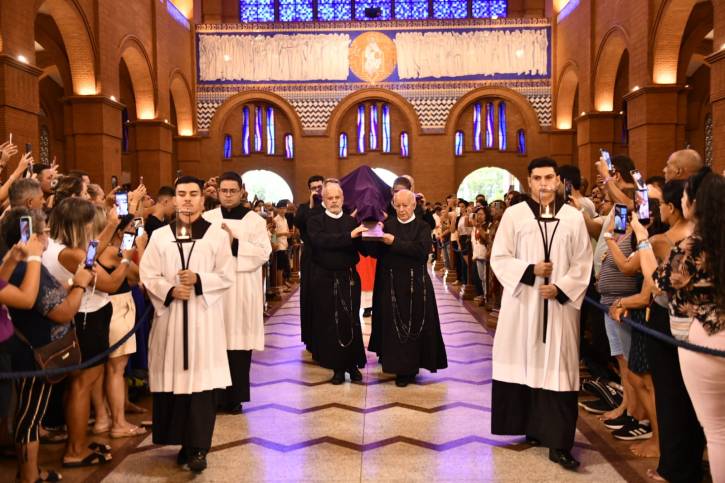 O Santuário Nacional de Aparecida viveu, nesta Sexta-feira Santa (03), o ápice do silêncio e da adoração. Às 15h, a Celebração da Paixão do Senhor reuniu milhares de fiéis para recordar o sacrifício de Jesus Cristo.