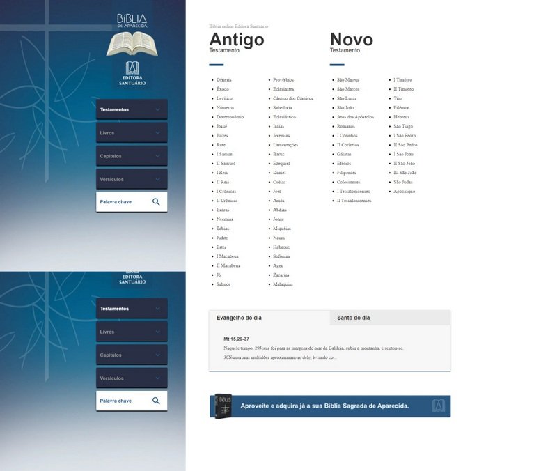 Acessando a 'Bíblia de Aparecida' no ‘Reze no Santuário’, a pessoa consegue consultar os textos do Antigo e Novo testamento, pesquisar o livro de interesse, capítulo, versículo e ainda, buscar os conteúdos por palavra chave.