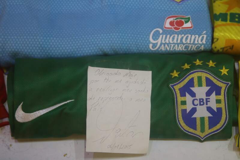 No espaço é possível ver também uma camiseta do goleiro Victor, do Atlético Mineiro, que participou da Copa de 2014. O jogador fez questão de deixar um recado, frisando o seu agradecimento a Mãe Aparecida por ter tido a oportunidade de representar o seu País.