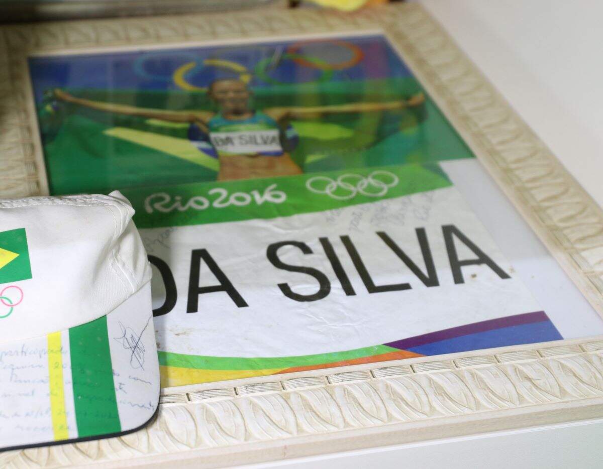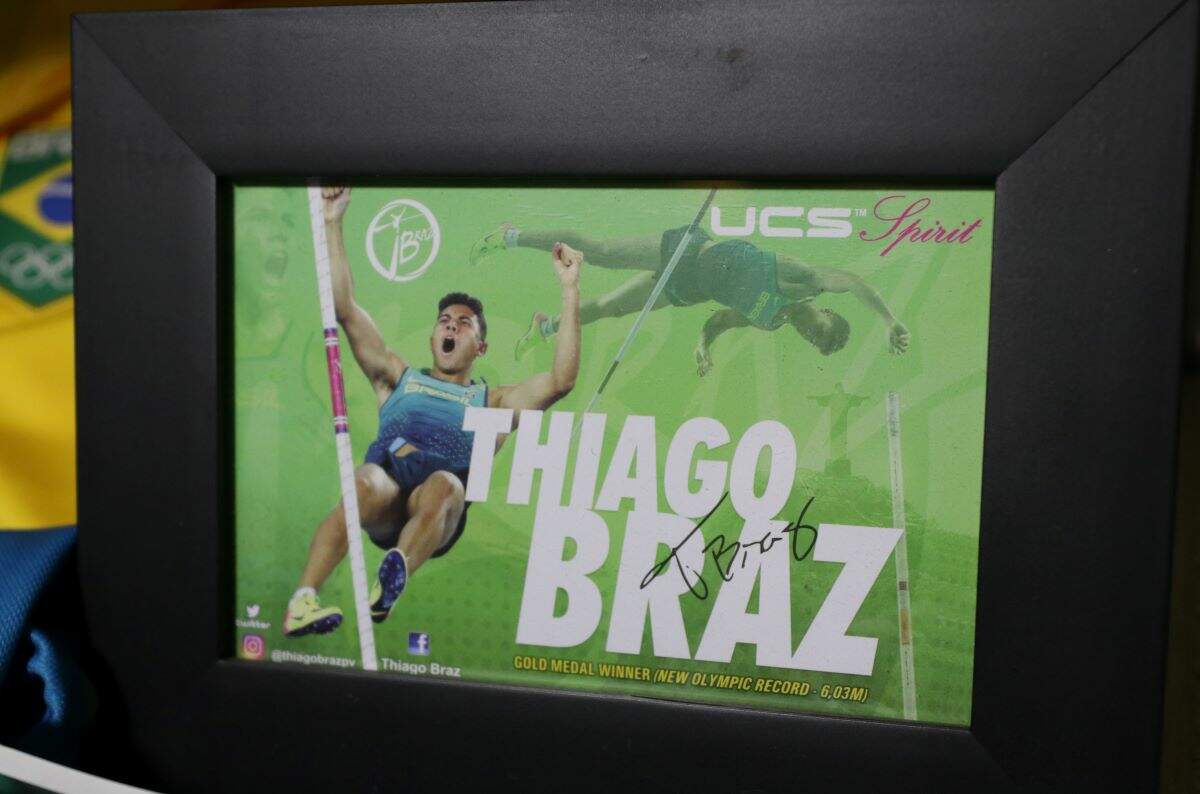 O atleta fez questão de deixar um porta-retrato com a foto da sua conquista nas Olímpiadas do Rio de Janeiro, em 2016, onde ele conquistou medalha de ouro no salto com varas.