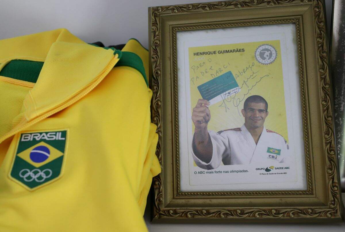 O judoca que participou das Olimpíadas de 1996, em Atlanta, deixou um porta-retrato com a sua foto.