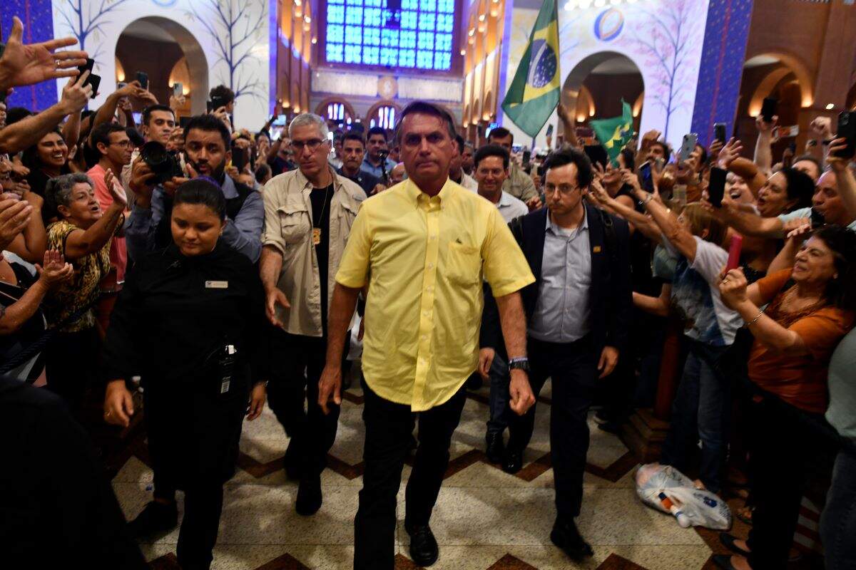 O presidente Jair Bolsonaro visitou o Santuário Nacional de Aparecida, na tarde desta quarta-feira (12), e participou da celebração das 14h, no Altar Central.