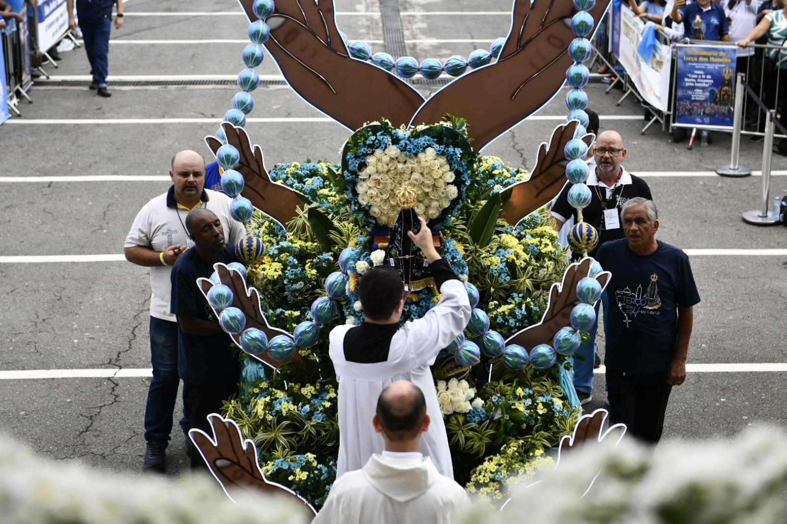 “Estamos num momento de oração e temos fé, como todo mundo tem, de contemplar esse momento tão bonito que é o Terço dos Homens. Quantas pessoas vêm até os pés de Nossa Senhora, cada uma com o seu pedido, sua oração, seu agradecimento. [...] E esse terço, cada bolinha tem um significado, cada bolinha tem uma oração, um pedido. Espero que todo mundo, quando olhar para esse terço, sinta muita fé e esperança”, afirma a colaboradora.