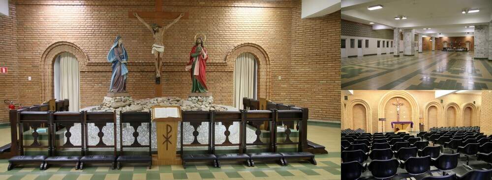 * A Capela das Confissões é um espaço de preparação para o Sacramento da Reconciliação. É onde acontece o rito penitencial e também é usada para acolher grupos pequenos de romarias, que buscam fazer um momento de oração.