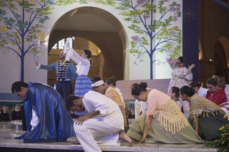 Nesta sexta-feira, 12, a Coroação de Nossa Senhora Aparecida no Santuário Nacional relembrou a ocasião da abolição da escravatura no Brasil representando na coreografia a assinatura da Lei Áurea pela princesa Isabel.