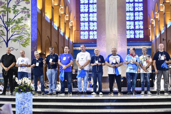 A cada mistério rezado, o missionário redentorista Pe. Mauro Vilela, C.Ss.R., colheu as intenções de alguns dos Homens do Terço que estavam ao redor do Altar Central. Momentos de escuta, agradecimentos e partilha das intenções. Dentre estes devotos estavam:
