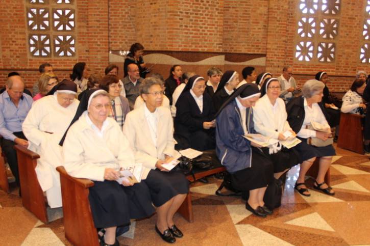 27 religiosas da Congregação das Irmãs Dominicanas da Beata Imelda participaram hoje de missa no Santuário Nacional, marcando a abertura da Assembleia Geral, que será realizada em Santa Cruz do Rio Pardo (SP). Estiveram presentes dominicanas vindas da Itália, República Dominicana, Filipinas, Indonésia, Bolivia, México, Albânia e Brasil.