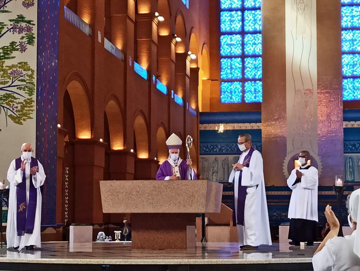No último domingo (28) Dom Orlando Brandes, Arcebispo de Aparecida presidiu a celebração eucarística no Santuário às 8h, e refletiu a liturgia do 2º domingo da Quaresma, comentando sobre a transfiguração, o calvário e o Tabor na vida do cristão.
