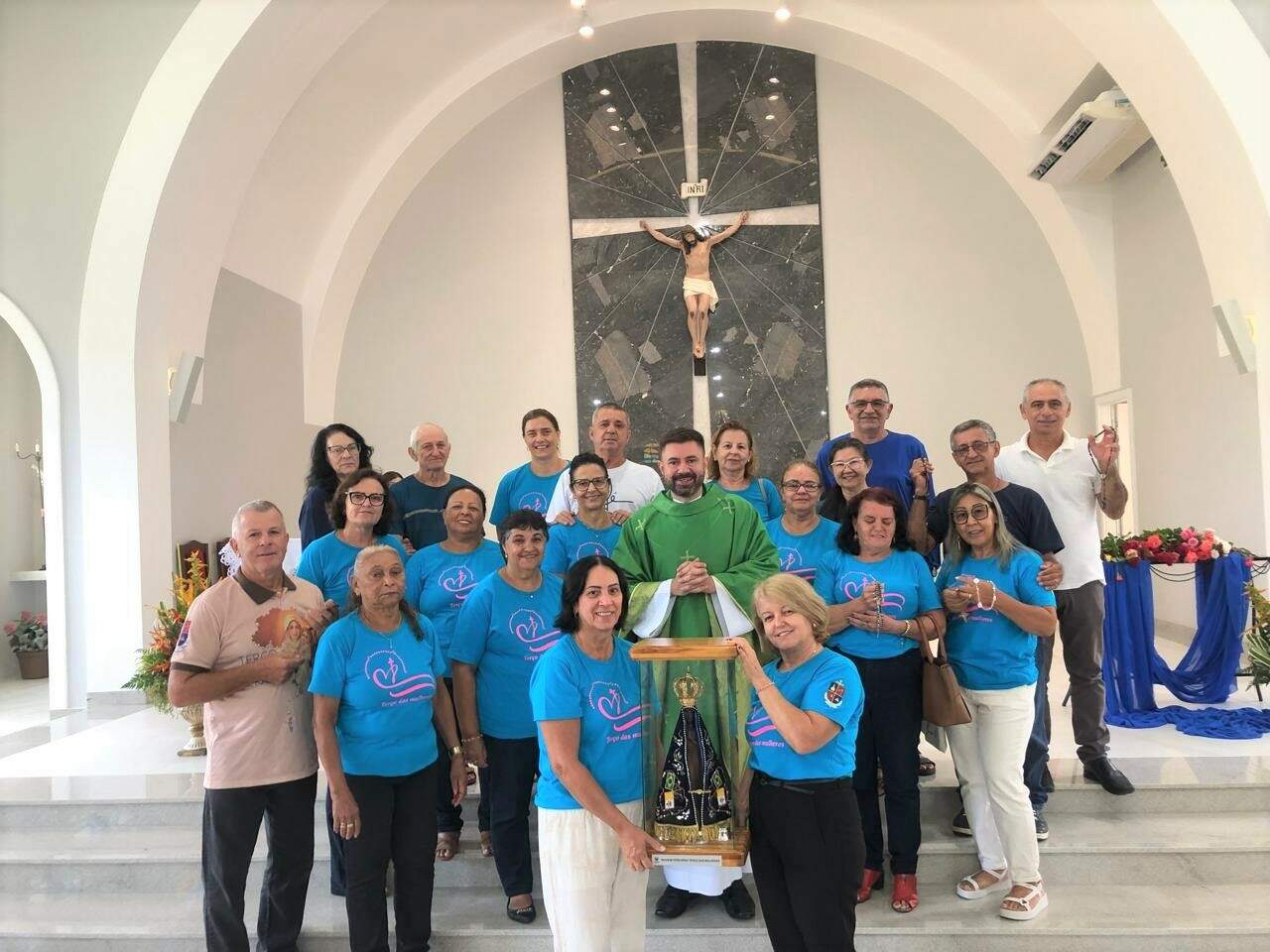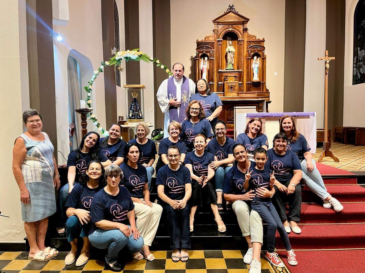 “Nosso grupo é composto por 33 mulheres que rezam os terços na paróquia, todas as segundas-feiras a noite! Durante a semana a gente faz o terço nas casas também. Iniciamos nosso grupo em 2019, fruto do Cerco de Jericó realizado aqui na comunidade, ou seja, suscitou no coração de Deus a formação de um grupo de Terço de Mulheres que a gente não tinha na paróquia. E nesses seis anos, foram muitas transformações, mulheres transformadas pela oração do Santo Terço, mulheres que não se achavam capazes de frequentar uma vida de igreja, de ter uma intimidade com a Nossa Senhora, que se sentiam excluídas pela sociedade, que não se sentiam úteis para servir na Igreja! E o melhor é que uma ajuda a outra em sua caminhada! Participamos de missas em outras comunidades, em outras paróquias, até mesmo em outras cidades. Cuidamos também da missa do terceiro domingo do mês na paróquia e fazemos gesto concreto arrecadando alimentos”.