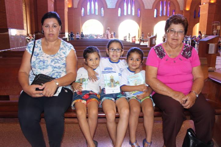 A Maria Fernanda, 5 anos, veio para a novena junto com suas irmãs Maria Júlia e Maria Vitória, acompanhadas da avó e da tia, ela diz gostar muito da Mãe de Jesus. “Eu gosto muito Dela, porque Ela sempre faz o bem pra gente” e falou que em suas orações reza pelo avô. “Eu rezo para que meu avô esteja bem lá no céu”.