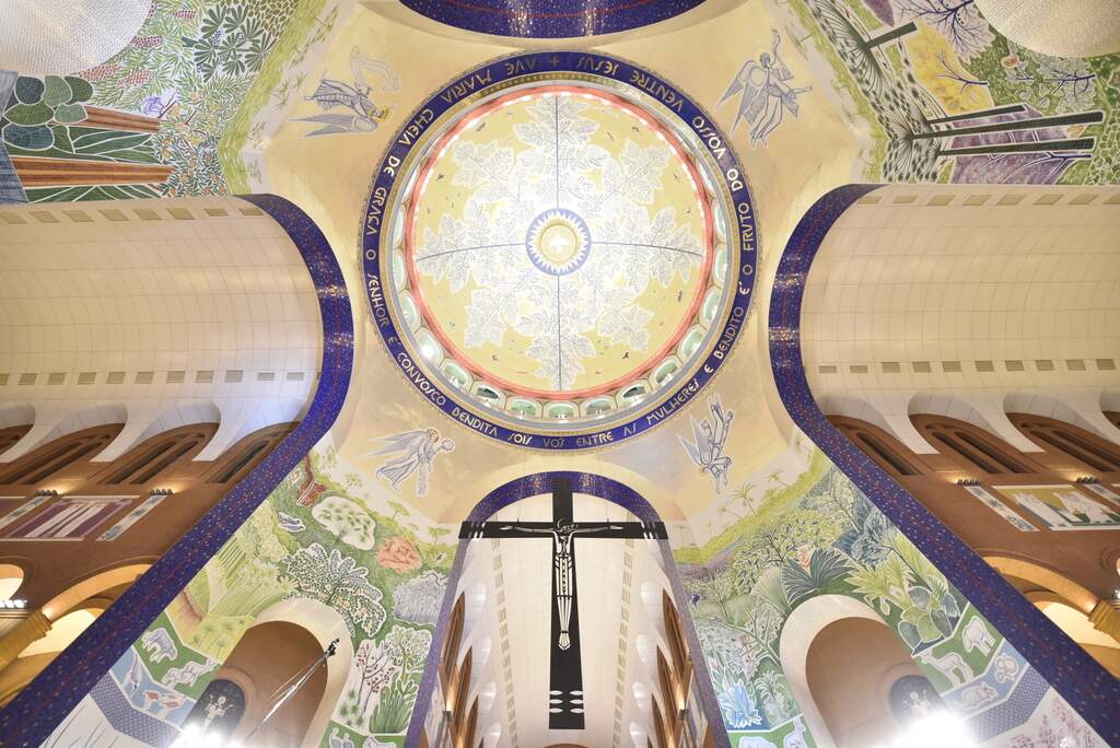 Momento da revelação da Cúpula Central.maisMomento da revelação da Cúpula Central.menos O tema da Cúpula faz alusão à parábol...maisO tema da Cúpula faz alusão à parábola do grão de mostarda, que se torna a grande árvore onde os pássaros se aninham.menos Momento da revelação da Cúpula Central.maisMomento da revelação da Cúpula Central.menos Projeto é do artista sacro Cláudio Pa...maisProjeto é do artista sacro Cláudio Pastro.menos O tema da Cúpula faz alusão à parábol...maisO tema da Cúpula faz alusão à parábola do grão de mostarda, que se torna a grande árvore onde os pássaros se aninham.menos Romeiros se surpreendem com revelação...maisRomeiros se surpreendem com revelação da Cúpulamenos Nesse conjunto artístico, o peregrino...maisNesse conjunto artístico, o peregrino contempla o Paraíso que Deus criou para a humanidade habitar, local de tranquilidade e paz.menos Romeiros se surpreendem com revelação...maisRomeiros se surpreendem com revelação da Cúpulamenos Devotos olham atentamente cada detalh...maisDevotos olham atentamente cada detalhe da cúpula.menos Grande cúpula do Santuário Nacional.maisGrande cúpula do Santuário Nacional.menos