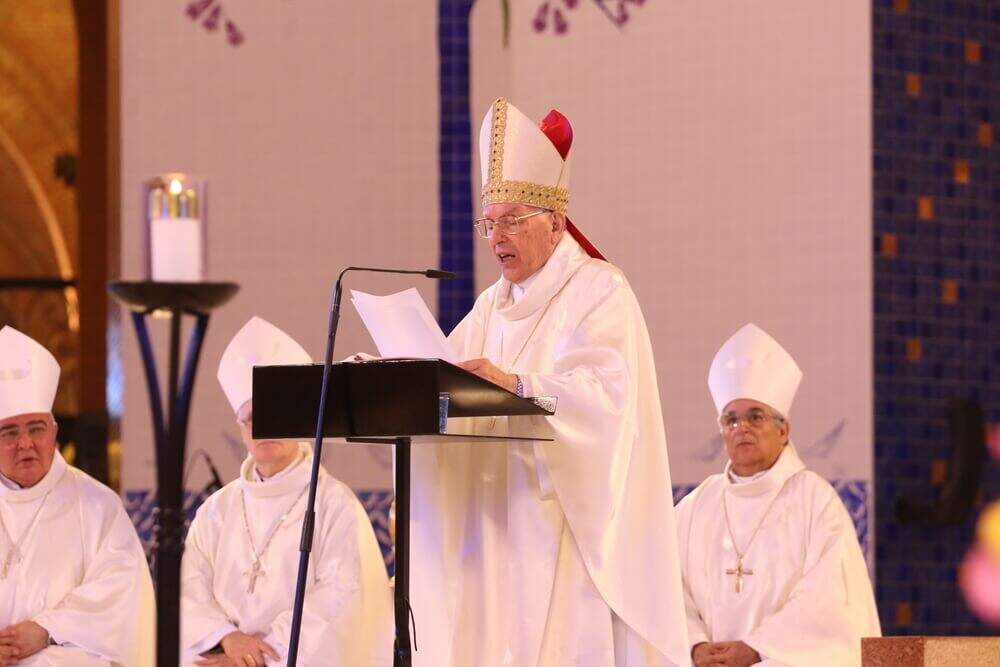 O representante do Papa Francisco, o cardeal italiano Giovanni Battista Re presidiu a celebração que reuniu diversos bispos do Brasil para refletir o tema ‘Bem-Aventurada Virgem Maria, Mãe da Consolação', junto aos devotos que se faziam presentes na casa da Mãe Aparecida.
