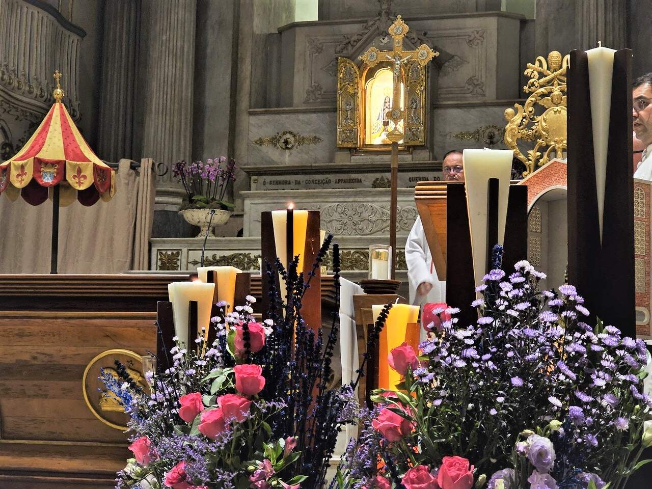 Na Missa das 18h desta quarta-feira (12) na Basílica Histórica fomos chamados a contemplar Nossa Senhora Aparecida como aquela que nos mostra o caminho de cura e paz, pois ela é a Mãe de misericórdia. Nossa Senhora, em sua ternura materna, sempre esteve próxima dos que enfrentam dores e desafios, oferecendo conforto e esperança. No silêncio de sua fé, ela nos ensina que, mesmo diante das provações, podemos encontrar a verdadeira paz no Senhor.