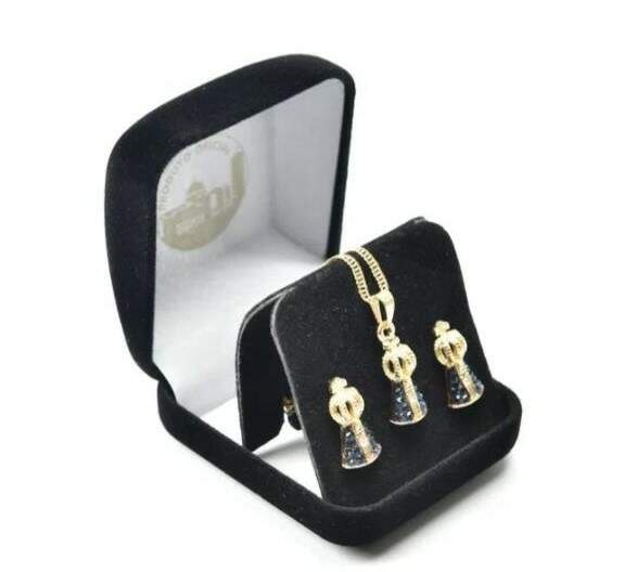 As peças são banhadas a ouro, tem aplicação em pedras de zircônia azul