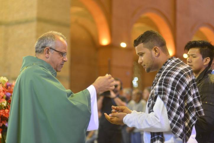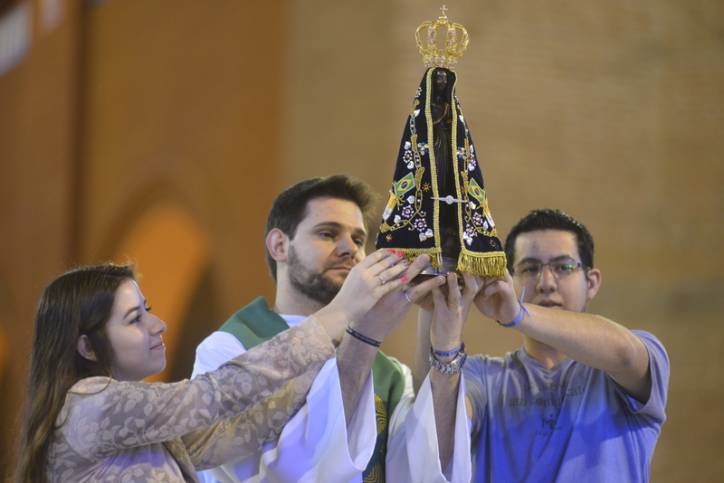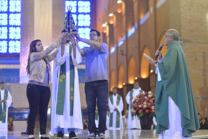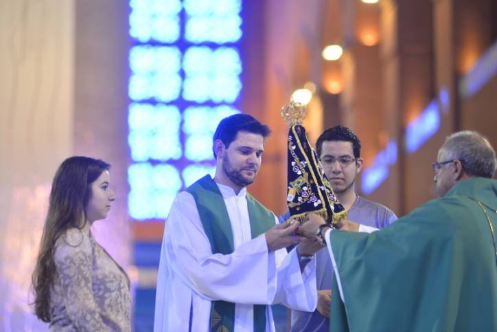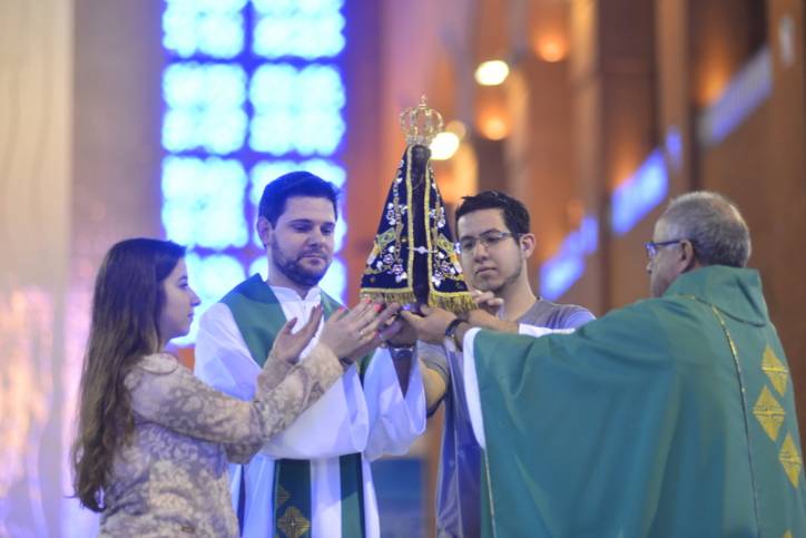A imagem peregrina de Nossa Senhora Aparecida foi enviada nesta segunda-feira (27) à Diocese de Caxias do Sul (RS). Os representantes da diocese, o assessor do Setor da Juventude, Pe. Rudinei Zorzo, a articuladora Fernanda Fontes e o comunicador Felipe Padilha, receberam a réplica na celebração Eucarística das 9h, no Santuário Nacional, presidida pelo missionário redentorista, padre João Batista de Almeida, reitor do Santuário.