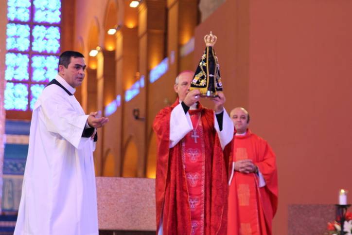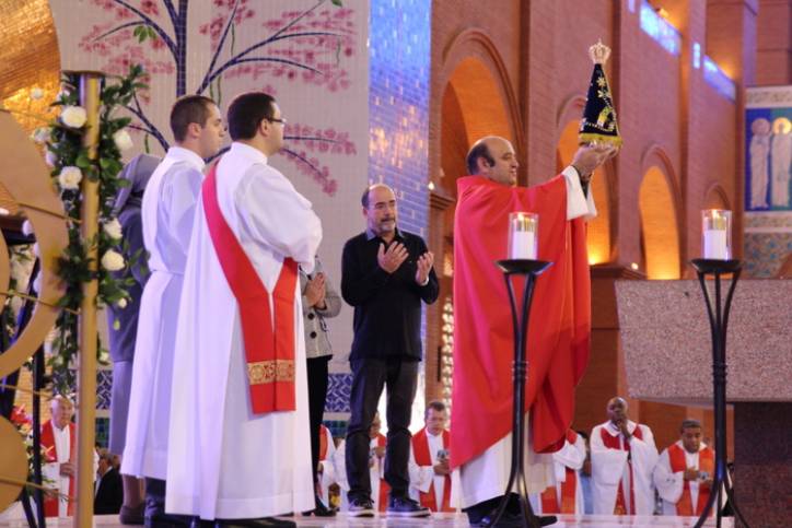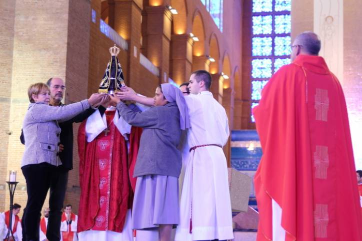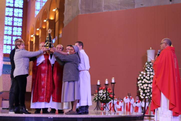 Envio da imagem – Após a comunhão, o reitor do Santuário Nacional de Aparecida, padre João Batista de Almeida, fez a oração de envio e entregou a imagem de Nossa Senhora Aparecida à diocese de Santo André nas mãos do bispo.