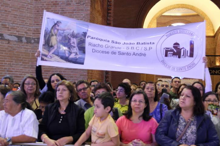 A Diocese de Santo André (SP) recebeu na manhã deste sábado (14) a imagem jubilar de Nossa Senhora Aparecida. O envio foi realizado durante a missa das 9h, celebrada no Altar Central e presidida por Dom Pedro Carlos Cipolini, bispo da diocese.