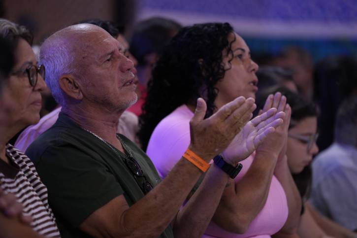 Em um clima de profundo recolhimento, todos acompanharam a meditação por meio de orações, cânticos e reflexões.