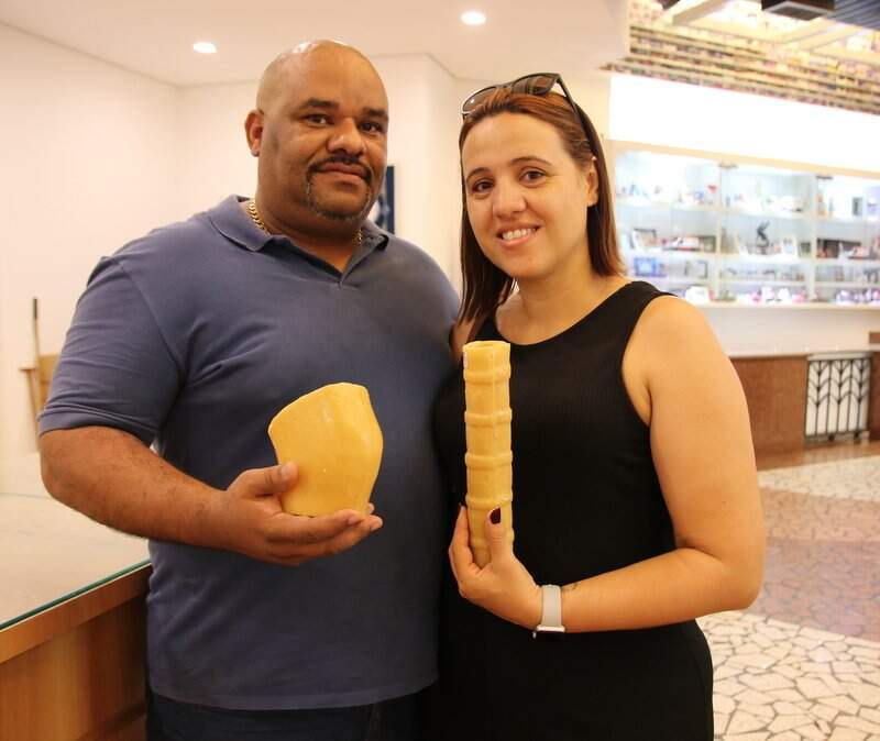 Elisa é da cidade de Bom Despacho, Minas Gerais e junto com o seu agradecimento aproveitou para deixar uma carteira de trabalho e um objeto de cera de uma casa. “A carteira de trabalho é para que eu possa conseguir um emprego e a casa, é para que nós consigamos construir, porque a gente tá sempre agradecendo por todas as intervenções e pedindo força, saúde”, explicou.