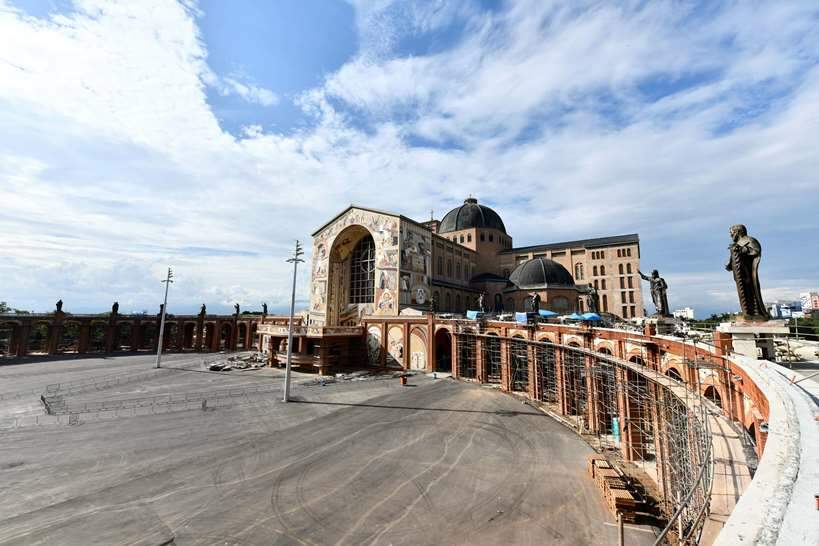 O desafio agora é a Fachada Sul e a Colunata dos Apóstolos! As obras seguem traduzindo a fé em arte para auxiliar os devotos da Mãe Aparecida a mergulharem na Palavra de Deus, através dos mosaicos que retratam cenas bíblicas.