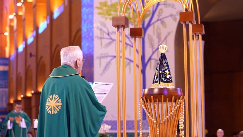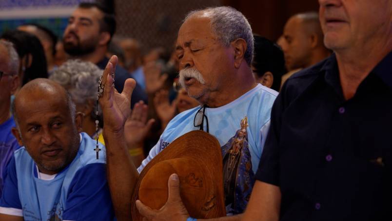 Na procissão de entrada, os fiéis acolheram a imagem da Mãe Aparecida ao som do Hino do Terço dos Homens: