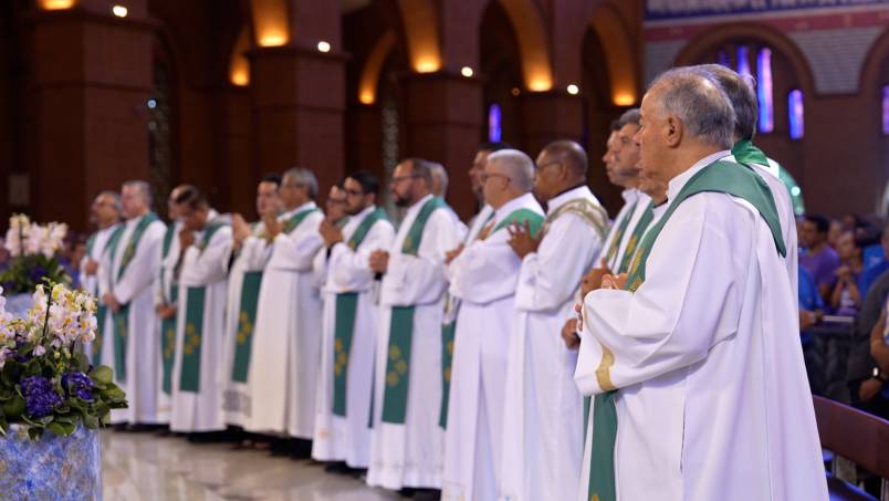 Na manhã deste domingo (8), na 18ª Romaria Nacional do Terço dos Homens, o dia começou com a Missa de Envio, celebrada às 8h no Altar Central do Santuário Nacional. A celebração eucarística foi presidida por Dom Orlando Brandes, arcebispo de Aparecida, e contou com a acolhida do missionário redentorista Padre Camilo Júnior, C.Ss.R.
