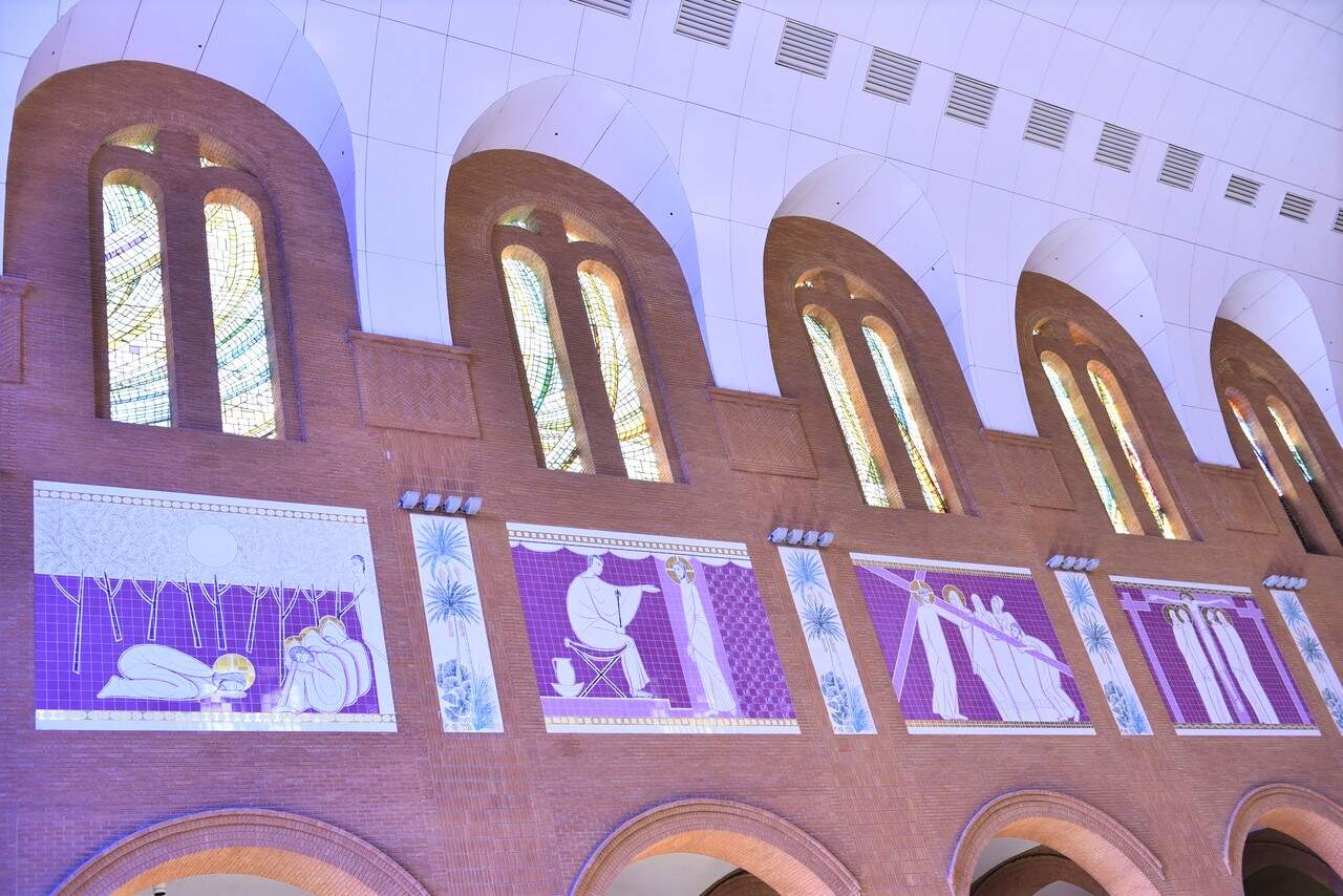 Dentro do Santuário Nacional, localizada na Nave Oeste, encontram-se oito painéis em tom lilás feitas por Claudio Pastro (1948-2016), com o novo mandamento, a Eucaristia, e a paixão e morte de Jesus.