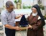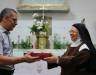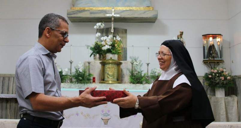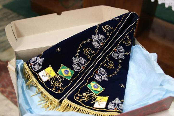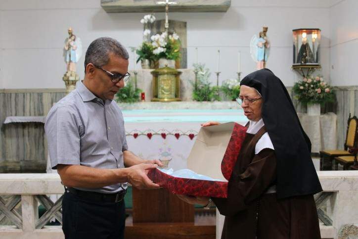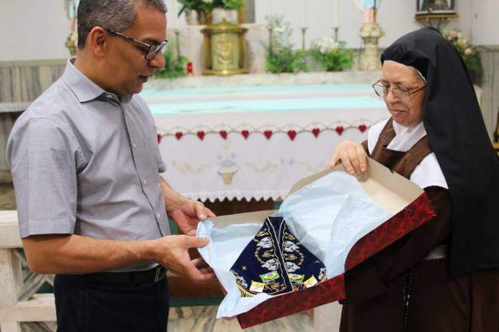 Irmã Maria Regina da Imaculada Conceição fez a entrega ao padre Eduardo. A confecção foi feita por ela e a irmã Teresa Margarida do Coração de Jesus. O trabalho levou quinze dias.