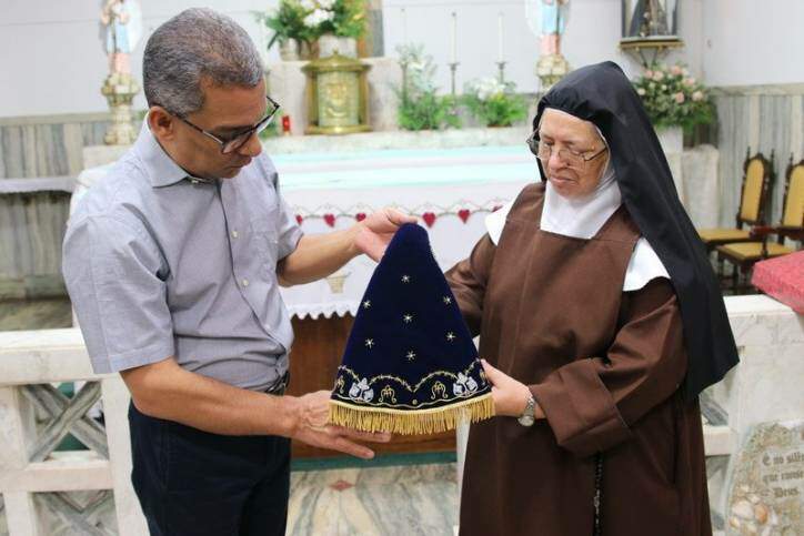A entrega da nova veste da Padroeira do Brasil aconteceu nesta segunda-feira (7), no Carmelo de Santa Terezinha, em Aparecida (SP).