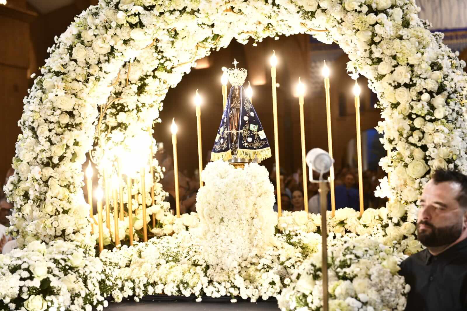 Mariangela Zan canta em homenagem a N...maisMariangela Zan canta em homenagem a Nossa Senhora Aparecidamenos Detalhe da Imagem e do Trono em 2025maisDetalhe da Imagem e do Trono em 2025menos Manto azul durante entrada da imagem ...maisManto azul durante entrada da imagem de Nossa Senhora Aparecidamenos Manto trouxe momento de emoção durant...maisManto trouxe momento de emoção durante missa menos Carro andor com imagem de Nossa Senho...maisCarro andor com imagem de Nossa Senhora Aparecidamenos Padre Marlos Aurélio faz convite ao c...maisPadre Marlos Aurélio faz convite ao cuidado da Vida durante homiliamenos Benção dos Livros dos DevotosmaisBenção dos Livros dos Devotosmenos Missionários mostram os três Livros d...maisMissionários mostram os três Livros dos Devotosmenos Encenação com personagens da Fachada ...maisEncenação com personagens da Fachada na homenagem da Família dos Devotosmenos Padre Camilo, padre Fábio e mosaicist...maisPadre Camilo, padre Fábio e mosaicistas na Fachada Oeste menos