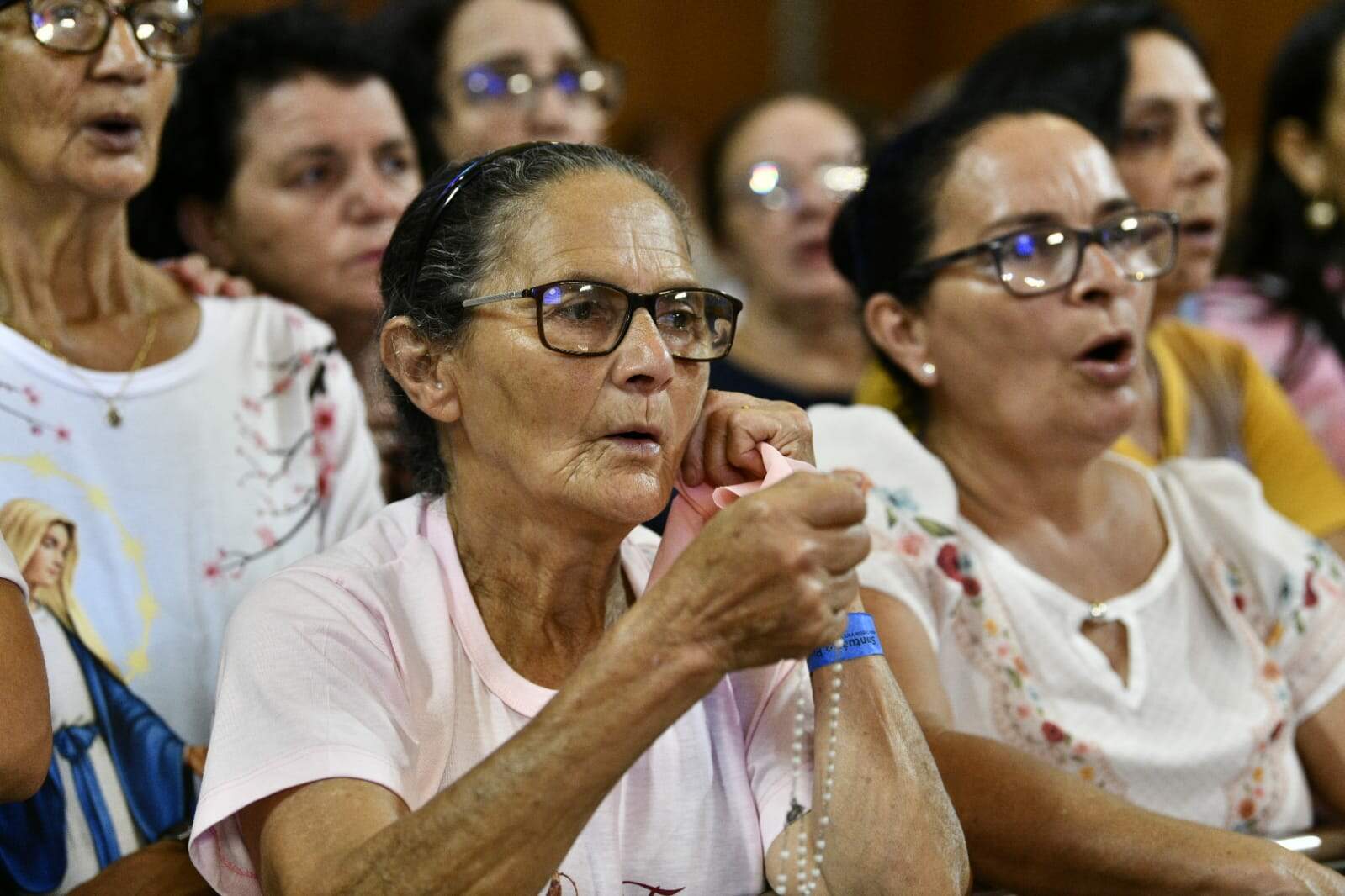“A Romaria mais alegre, mais colorida e mais perfumada que a gente recebe. A oração está na origem de todas as boas ações, e a oração do terço simboliza pra todas vocês a alegria de estarem todas na Casa da Mãe Aparecida”.