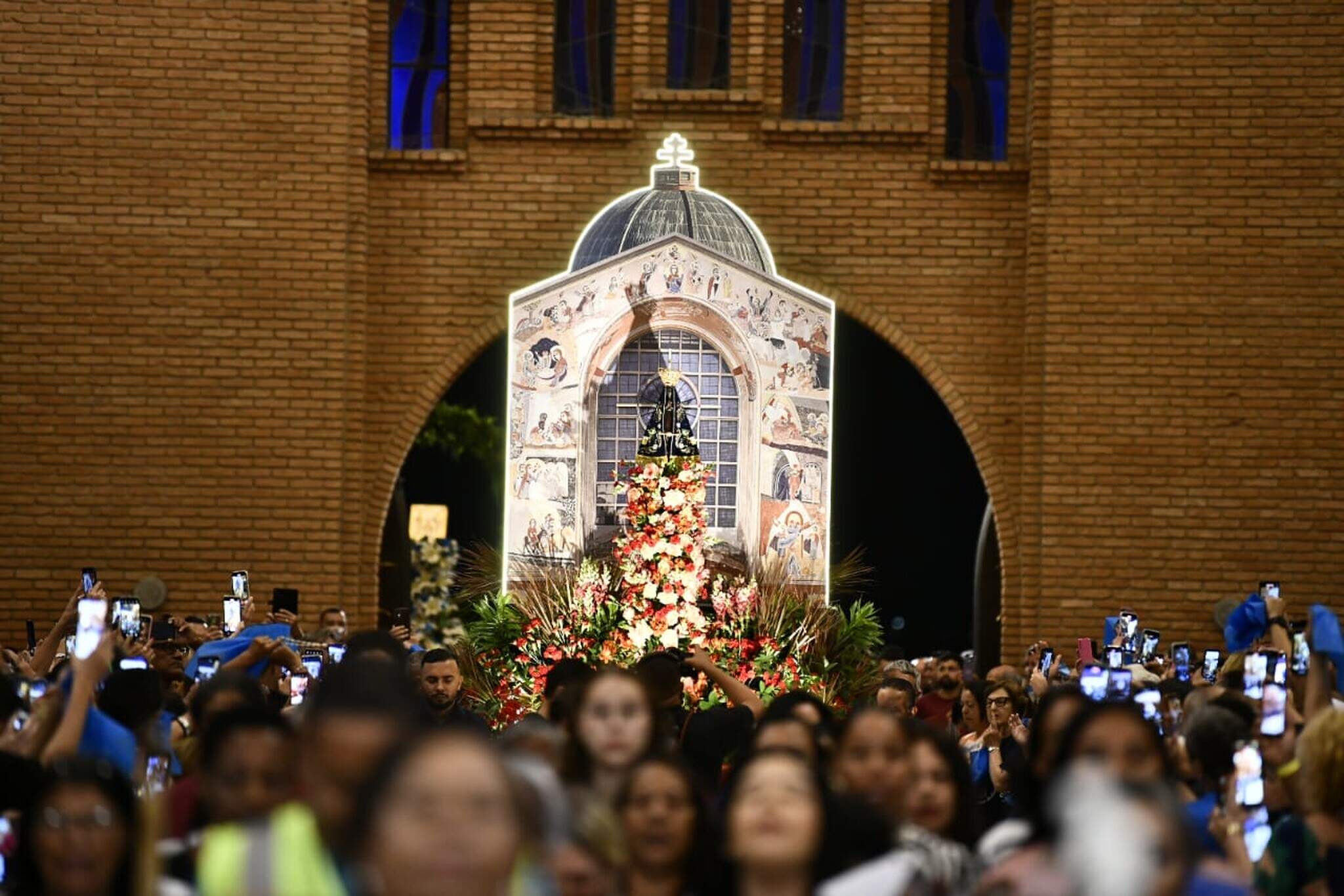 Na tradicional entrada da imagem da Mãe Aparecida, o carro-andor inseriu cada pessoa presente no simbolismo da Porta Santa e de Maria que vai à frente indicando a passagem para quem deseja seguir Jesus, encontrando Nele a Redenção.