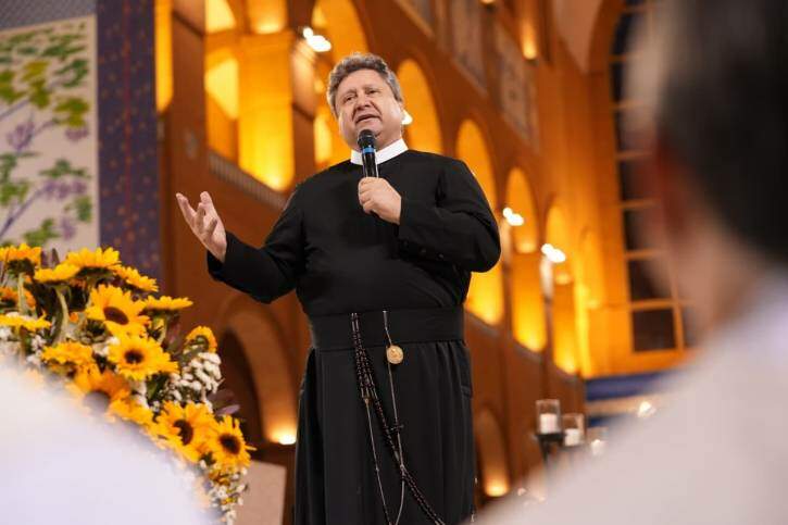 “Quando Nossa Senhora reza, contempla o rosto de Deus, pois então já anseia ver o rosto do seu Filho. Agindo assim, inconscientemente, deixa emergir sua própria identidade espiritual, é mulher de alegria”, pontuou.
