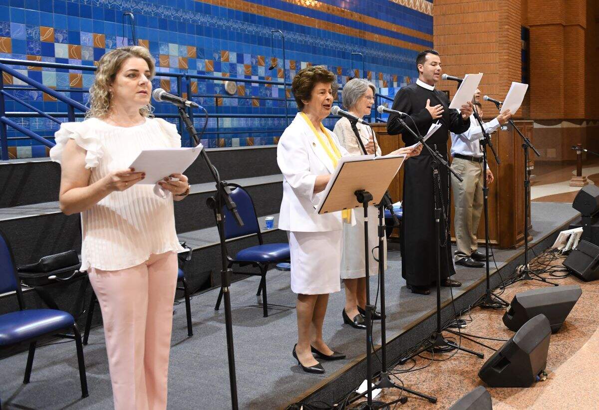 No Santuário, os responsáveis por cantarem as celebrações e paraliturgias ficam aos pés da Padroeira do Brasil, recebendo de perto a intercessão d'Aquela que, com certeza, se alegra com as notas musicais tomando conta do seu Santuário.