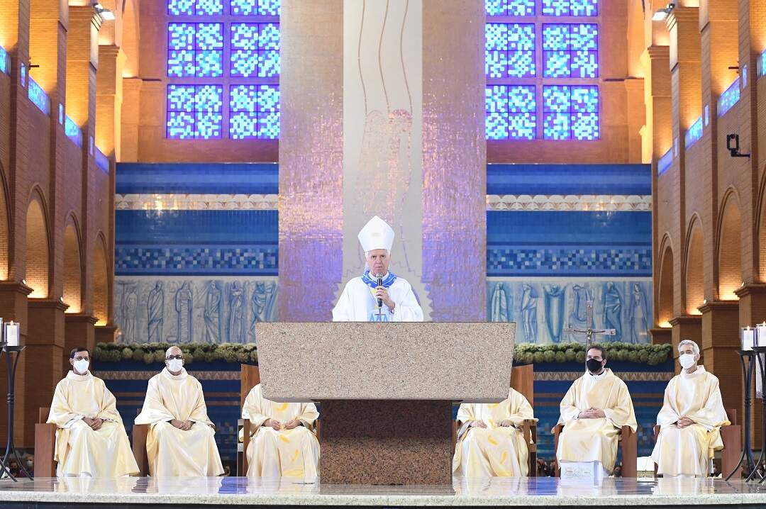 Já no Santuário Nacional, direto do Altar Central da Casa da Mãe Aparecida, Dom Orlando Brandes conduziu a Missa Solene. A celebração litúrgica refletiu, assim como durante toda a Novena, o tema "Com Maria, em família, revestir-se da Palavra".
