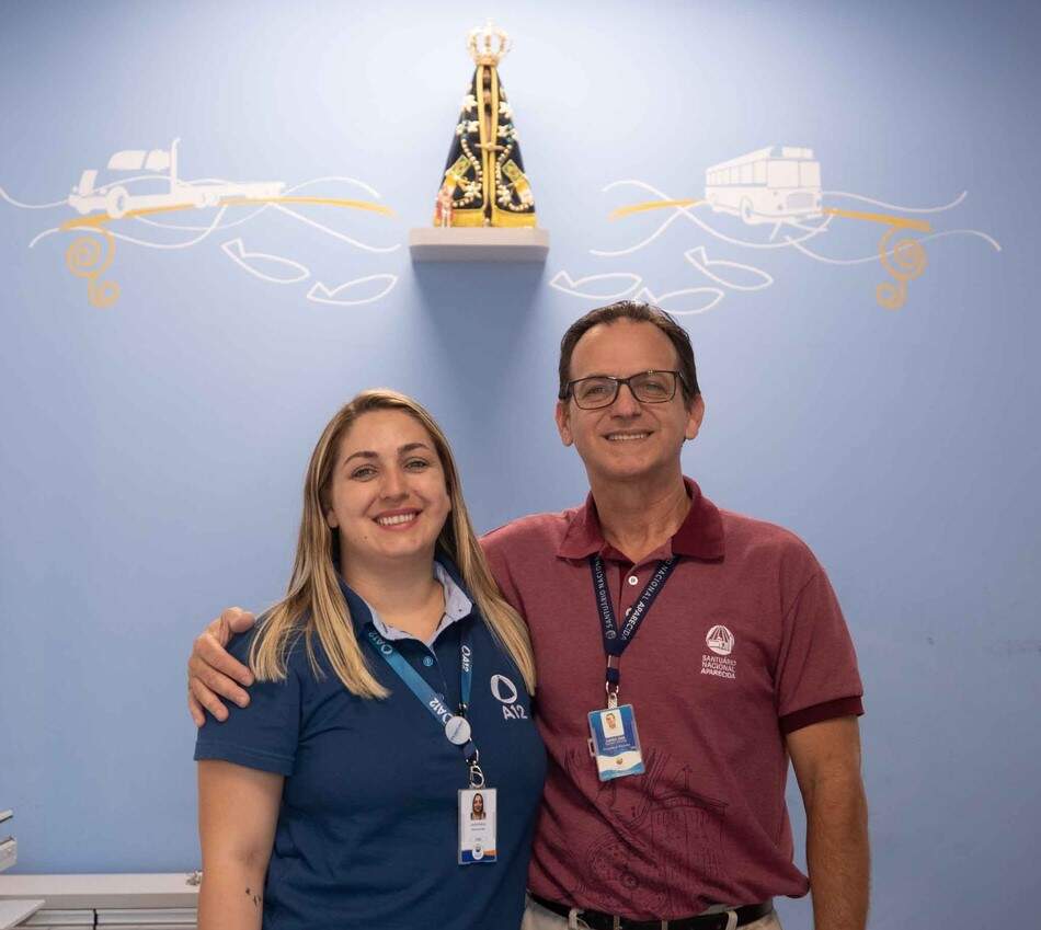 Juarez José de Paula, que há 19 anos trabalha como atendente na Sala dos Motoristas no Santuário é pai da Júlia Paula, líder comercial e marketing aqui do A12, e os dois falaram conosco a respeito desta emoção em estar juntos trabalhando no mesmo lugar.