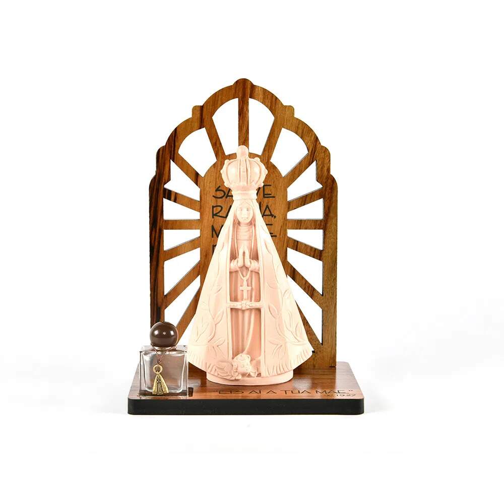 Acompanha Oratório, Imagem de Nossa Senhora, frasco de vidro e medalha para benzer.