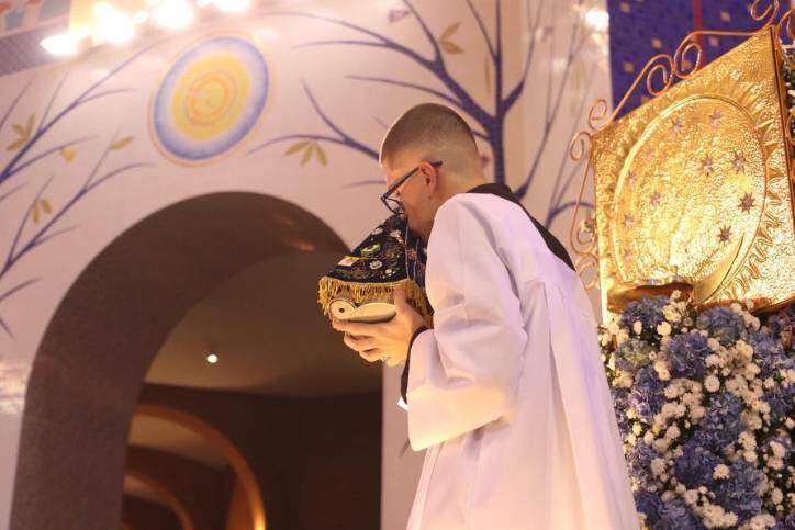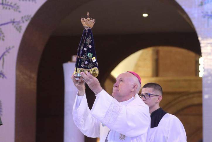 O Pe. Ferdinando iniciou a homilia afirmando que neste dia de Nossa Senhora Aparecida, brota no Santuário Nacional um grito profético: “não tenha medo da profecia, a profecia que brota do coração de um Deus que ama e que é misericórdia”.