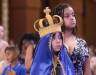 Após o Ato Penitencial, todas as crianças e romeiros presentes acolheram a Imagem de Nossa Senhora, que entrou em um lindo carro-andor ornado de flores azuis, acompanhada de três crianças ao som da música “Mãezinha do céu”.