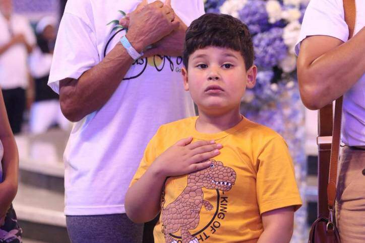Na sequência do hino de louvor, o Pe. Ferdinando convidou as crianças a rezarem: