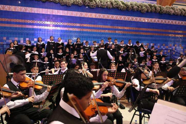 A animação musical ficou por conta da Orquestra e Coral Infantil do Projeto de Educação Musical do Santuário de Aparecida (PEMSA).