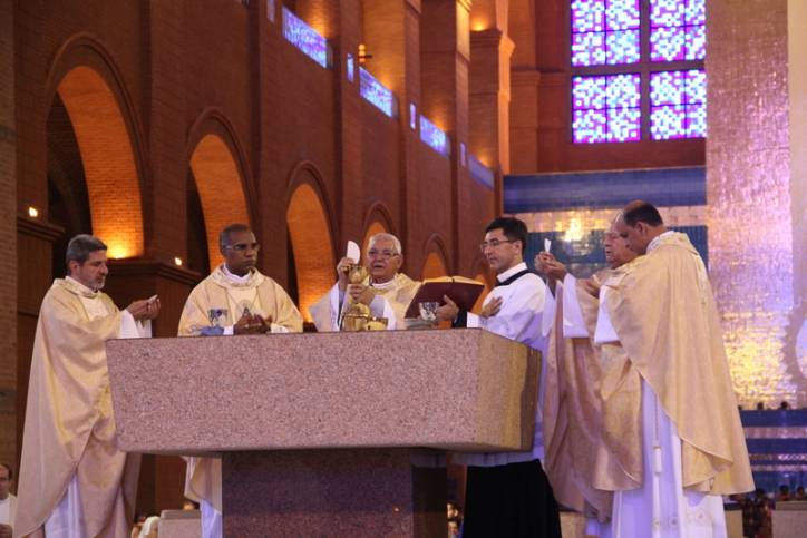 A celebração de envio foi realizada às 9h no Altar Central da Basílica da Mãe Aparecida e foi presidida pelo Bispo Diocesano Dom Frei Diamantino Prata de Carvalho, ofm.
