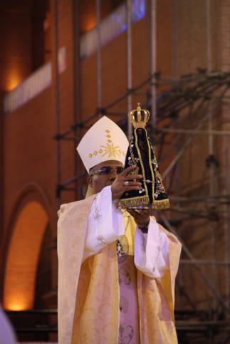 "Ao jeito de Maria queremos inserir-nos na Comunidade como irmãos e irmãs servindo com Alegria, é o que a imagem de Nossa Senhora Aparecida poderá nos motivar e inspirar”, pontua o Bispo Diocesano Dom Frei Diamantino, que tem como lema 'Servir com alegria".